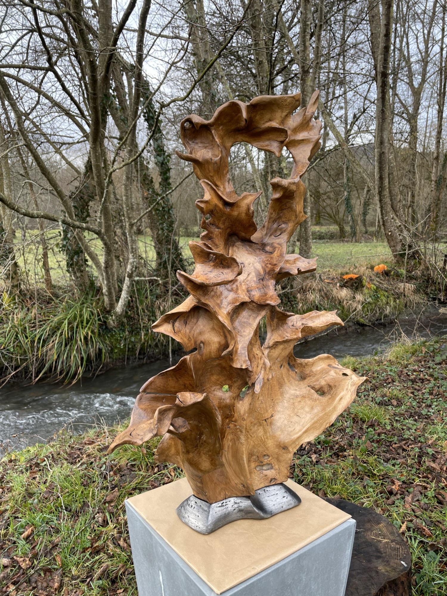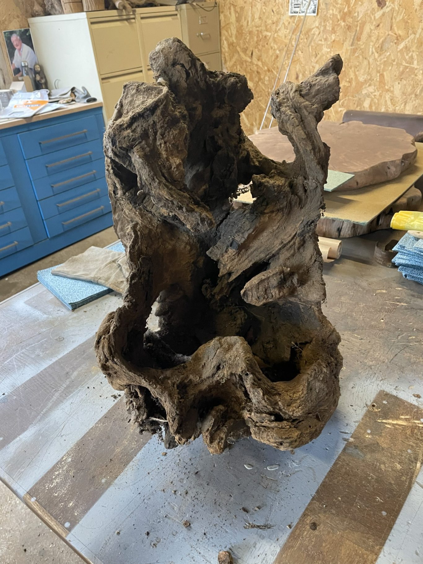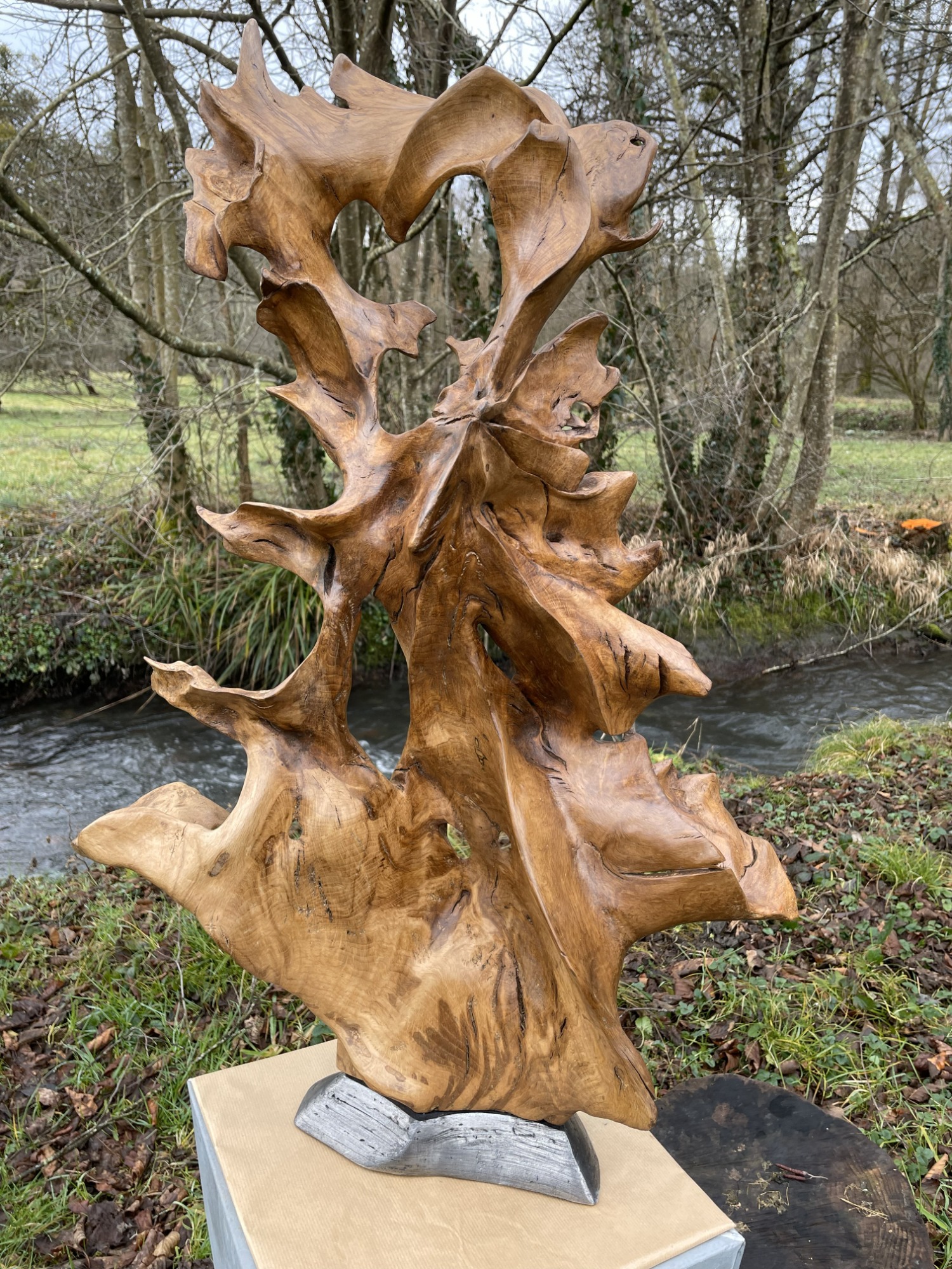 Il n'est pas toujours faciles de trouver l'inspiration dans les souches que je trouve dans les forêts alentours. Une fois nettoyées, il m'arrive de tourner de longs moments autour afin d'en tirer le meilleur ou du moins ce qui m'inspire.